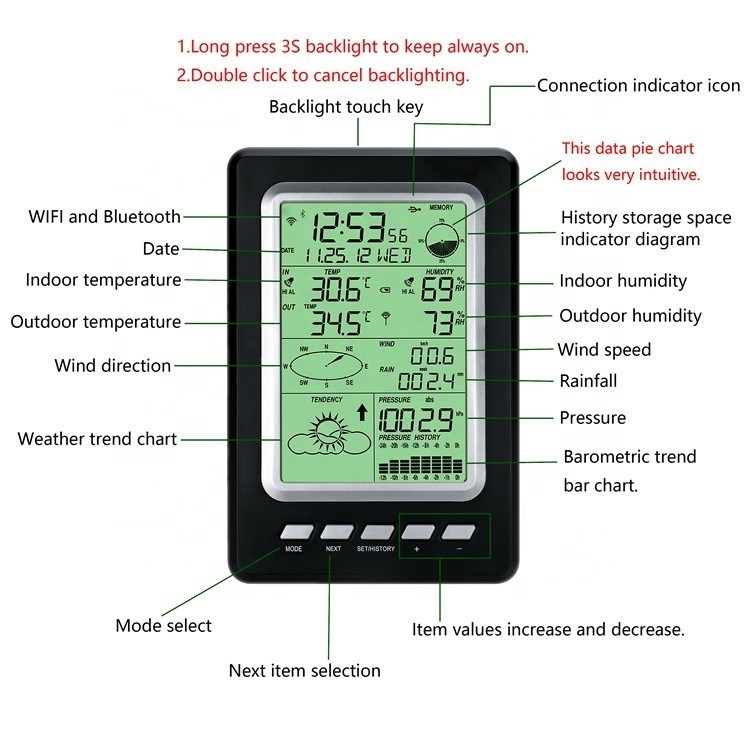 محطة طقس تعمل باللاسلكي,محطة الطقس المزودة بجهاز الواي فاي,محطة الطقس المنزلية المزودة بشبكة الواي فاي